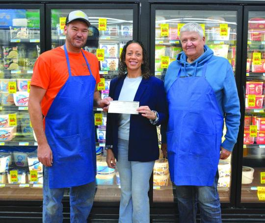 Image Description: Torpin's Rodeo Market presented a check to CASA on Tuesday morning. Pictured are (l-r) Brian Torpin, Monica Huber and Terry Torpin.